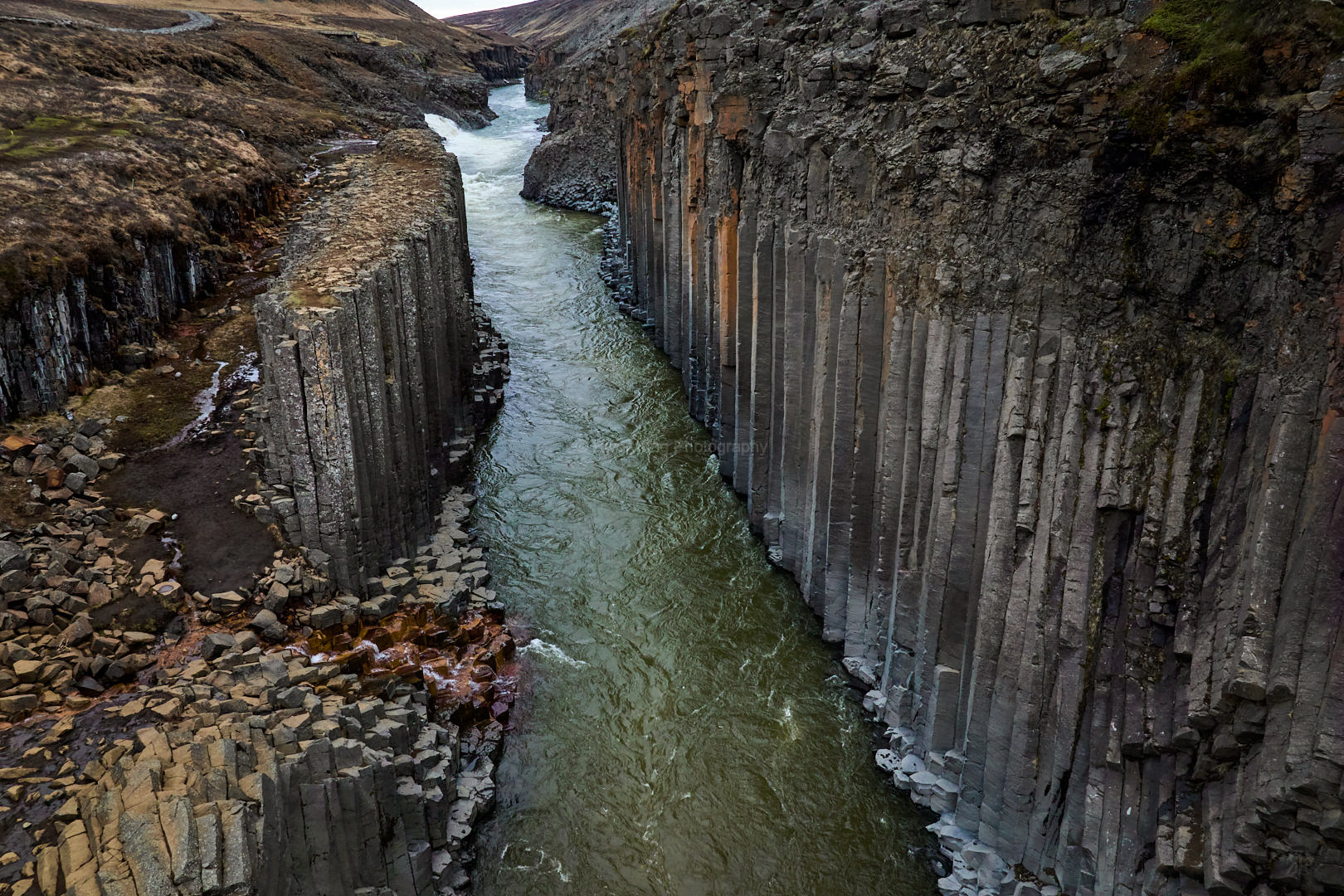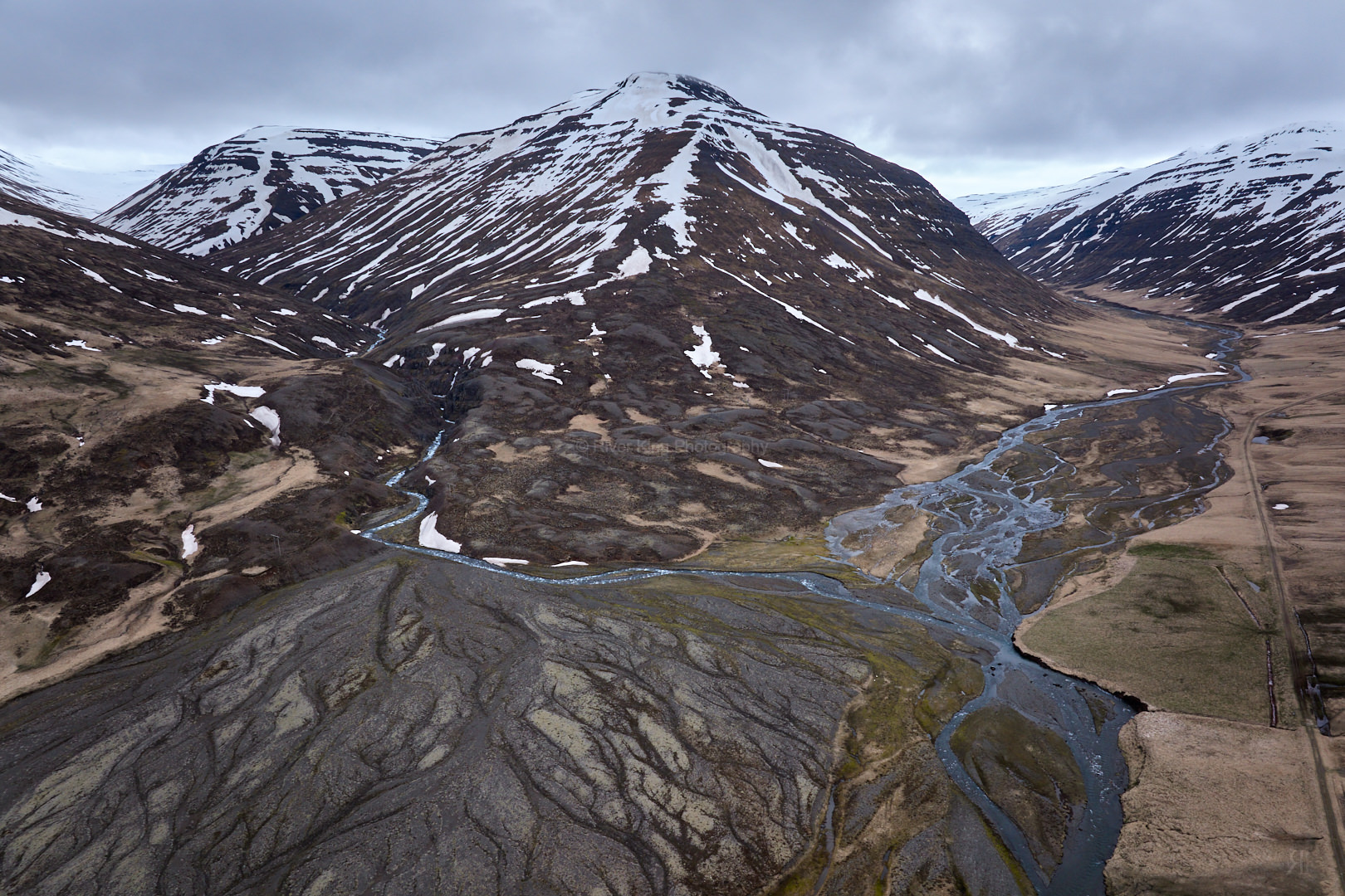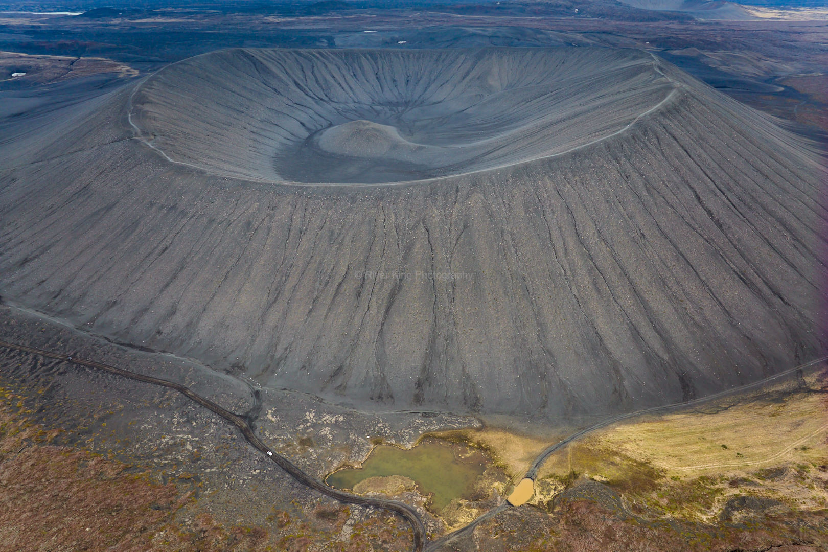 五月底的冰岛已经进入了极昼时段, 虽然每天依然有日落和日出,但是两者相距极短,即使是日落后,如果天气情况良好的话,地平线上会始终保持着一段霞光,直至日出。所以今天凌晨我就用无人机和相机记录了日落后地平线上的霞光,此时已是凌晨两点多。 因为前一天开车实在是太累了,所以凌晨到露营地后,我一直休息到下午一点多钟才出发去今天的第一站:惠尔火山(Hverfjall)。 惠尔火山是位于冰岛北部的一座凝灰岩环形火山,它有396米高,直径有近一公里。从露营地到惠尔火山一共用时五小时,在前往火山的路上,还看到了一座巨大的雪山,和外形像一个长方形面包的雪山。 两者远远看去非常的壮观。 抵达后火山后,就放飞无人机,让用空中视觉来近距离拍摄这座外形独特的火山。看完惠尔火山后,原本还要去两个有名的火山湖,但是因为路况不佳依然没有开放, 只好前往今天计划中最后一个目的地:Stuðlagil峡谷。Stuðlagil峡谷一个新晋的热门景点,因为峡谷两侧的巨型六棱玄武岩柱整齐划一、棱角分明,颇为壮观。 很可惜今天天气不佳,没有任何好的光线衬托,所以仅用无人机低空飞过峡谷拍摄了几张照片。