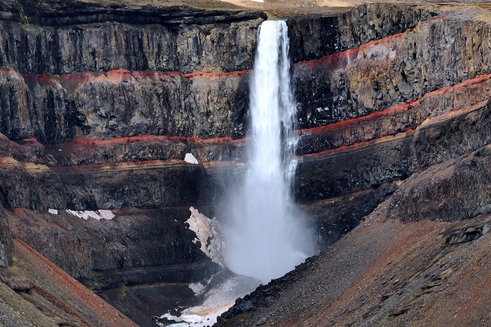 今天的行程原本只有亨吉瀑布(Hengifoss)和西角山(Vestrahorn),但是临时起意加入了观看海鹦鹉的Borgarfjarðarhöfn,所以今天的行程相当的满。 早晨从露营地驱车来到著名的亨吉瀑布(Hengifoss), 它位于冰岛东部,高约128米,也是冰岛第三高的瀑布。亨吉瀑布四周被玄武岩地层包围,而玄武岩层之间有红土相隔,形成了红黑相隔的奇景,因为从停车场到瀑布需要徒步2.5公里,所以今天上午的时间全部花在了徒步上了,不过亨吉瀑布是非常值得一游的景点。 下午又驱车来到了冰岛东南角的Borgarfjarðarhöfn,并且成功地看到了大量的海鹦鹉,总算如愿以偿。(我会专门开一个博客来写观看海鹦鹉经历。) 看完海鹦鹉后,又开车四小时来到了有“天空之镜”之名的西角山(Vestrahorn),只可惜天气还是不好,甚至下起了雨,所以在天空之境的停留很短,不过也拍到一些颇为不错的片子。