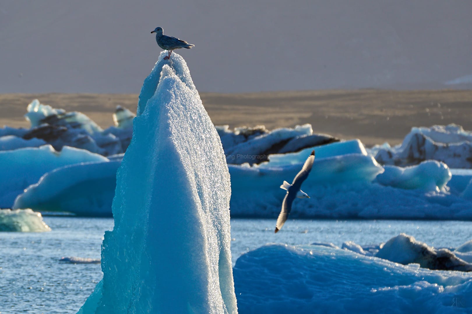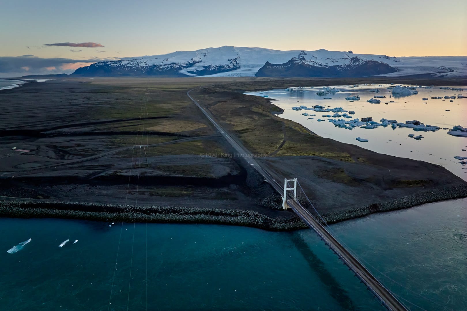 今天已是此次冰岛行的第五天,因为之前连续独自开车了好几天,到今天已经着实累了,所以今天基本上就在杰古沙龙冰河湖 (Jökulsárlón) 周边行动。 今天最先参观了斯维纳山冰川(Svínafellsjökull),它是欧洲最大冰原瓦特纳冰川(Vatnajokull)的分支。今天老天爷和开了很大的玩笑,每次当我放飞无人机去飞越斯维纳山冰川的时候,飞到一半的时候,就开始下雨,迫使无人机返航,这样持续了好几次,最终我放弃了用无人机拍摄斯维纳山冰川的想法。 从斯维纳山冰川到杰古沙龙冰河湖沿路的风景非常漂亮,到处是瓦特纳冰川的各个分支以及壮丽的雪山。今天最后在杰古沙龙冰河湖停留了很久,很是享受地欣赏及拍摄了湖上各种形态的浮冰,也用无人机拍摄了日落时候的视频。