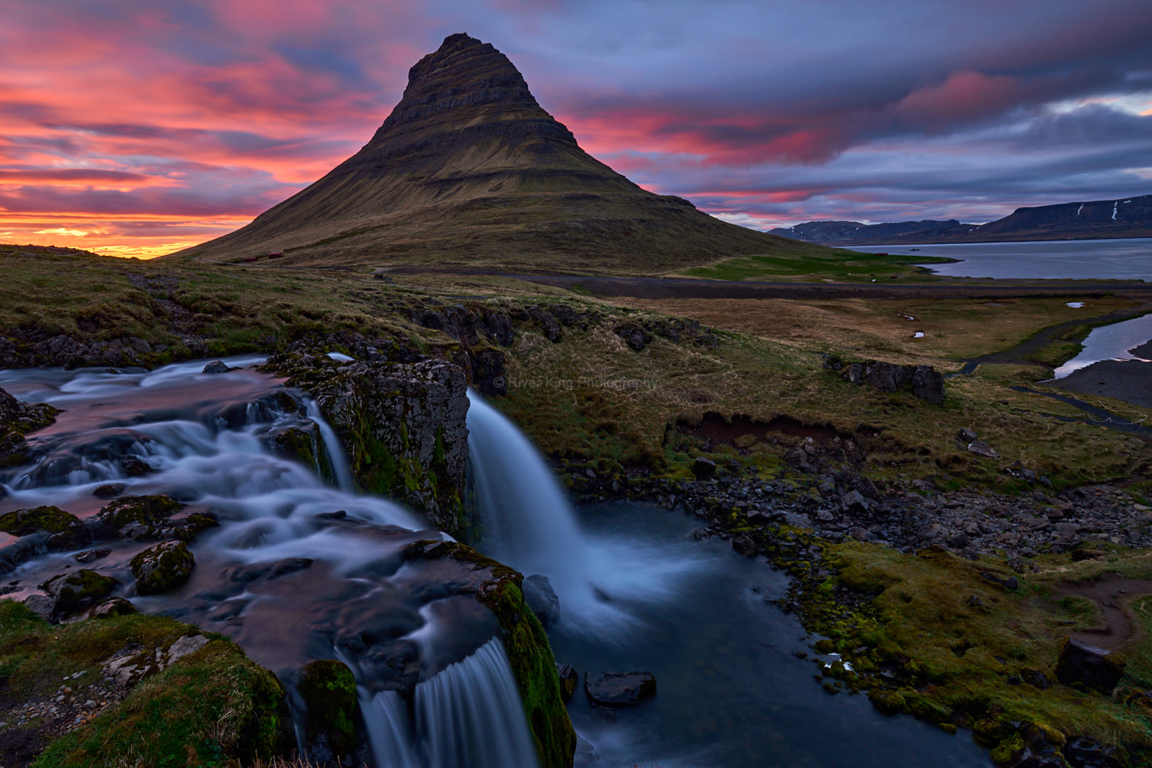 Since my first visit to Iceland in 2019, I’ve been utterly captivated by its breathtaking beauty. Unfortunately, due to the pandemic, it wasn’t until today, three years later, that I was able to set foot on this magical land again. Prior to this trip, I diligently researched and planned out a detailed itinerary of all the places I wanted to visit. Though my stay was only a week, I jam-packed this road trip with full of must-visit places. As soon as I landed, I picked up my car and headed straight for my first destination: Kirkjufell. Today’s weather was predominantly overcast, but it turns out, those very clouds created the most spectacular sunset of this trip. Kirkjufell, resembles a hat in shape. However, the most famous attraction around Kirkjufell is the waterfall next to it. Although not very large, the waterfall is incredibly picturesque when paired with Kirkjufell in the background. Coupled with the stunning sunset today, the photography session was absolutely perfect.