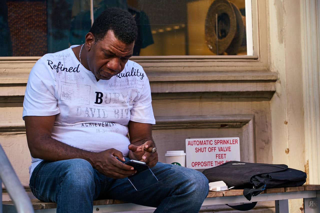 最终的出片结果却给了我一个惊喜。镜头在不经意间捕捉到的光影、瞬间和情绪,比我预想的要生动有力得多。猛然间意识到,如果能够放下内心的执念与不适,街拍能够最真实、最如实地记录下当时当地的时代气氛和鲜活的人与事。这无疑是一次奇妙的突破。兴许,这次在纽约 SoHo 区的实践,正是我个人街头摄影史的一个意料之外的序章。